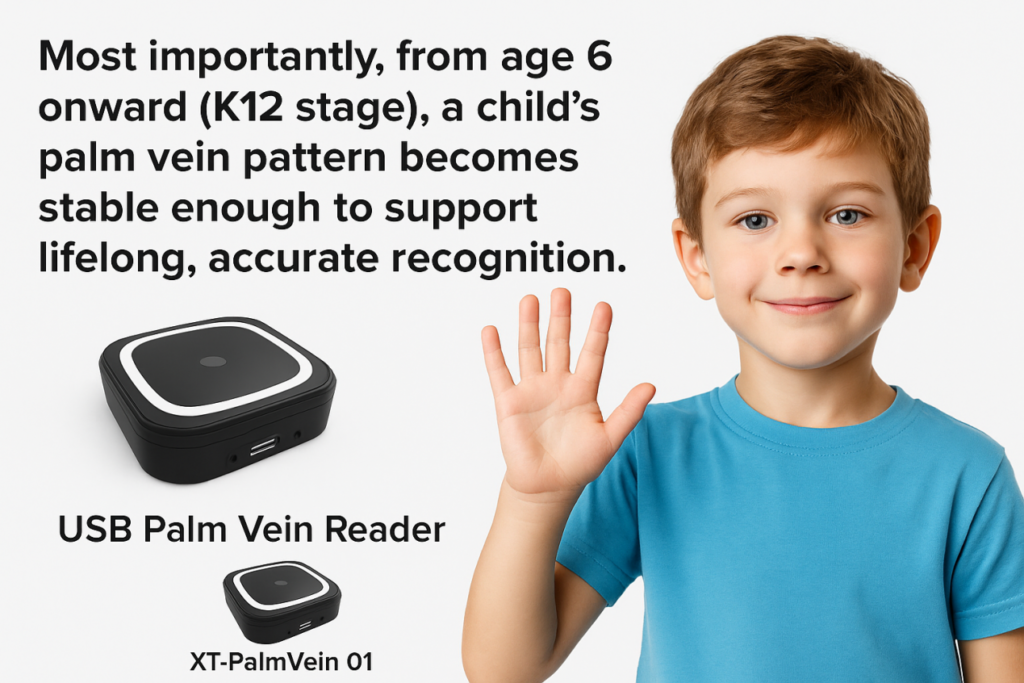In the world of biometrics, not all technologies are created equal—especially when it comes to children and students. Palm Vein Recognition offers a safer, more hygienic, and privacy-friendly approach to identity verification. Most importantly, from age 6 onward (K12 stage), a child’s palm vein pattern becomes stable enough to support lifelong, accurate recognition.