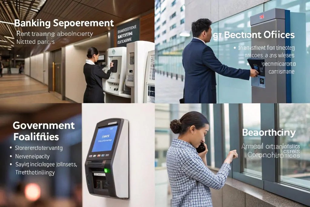 Biometric fingerprint scanners are used in banking, government, offices, and healthcare to enhance security and authentication.