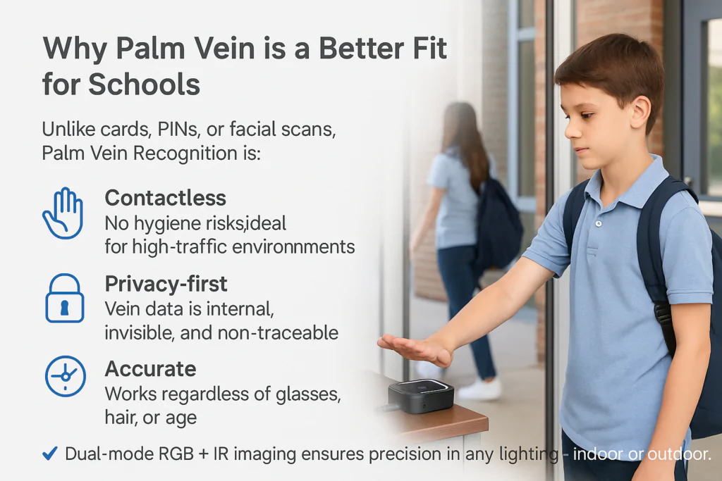 - Privacy-first – Vein data is internal, invisible, and non-traceable