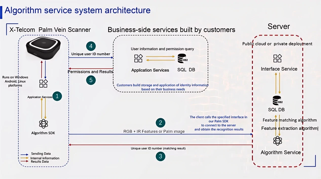 The Palm SDK Server executes the Palm Vein Recognition algorithm based on use case: