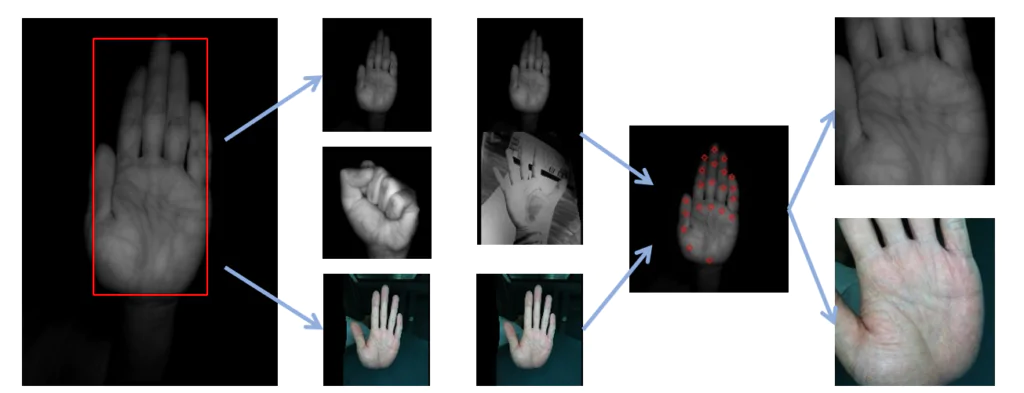 Palm vein recognition works by capturing unique patterns of veins inside the palm, which are as distinctive as fingerprints. To accurately capture these patterns, the system uses imaging technology that includes either infrared (IR) or both IR and RGB cameras.