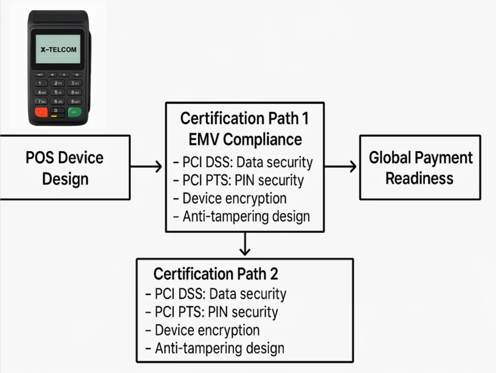 For any enterprise aiming to deploy POS devices in the global payment market, EMV and PCI certifications are fundamental requirements. These certifications are not optional—they serve as the baseline for ensuring transaction and hardware security in regulated financial environments.